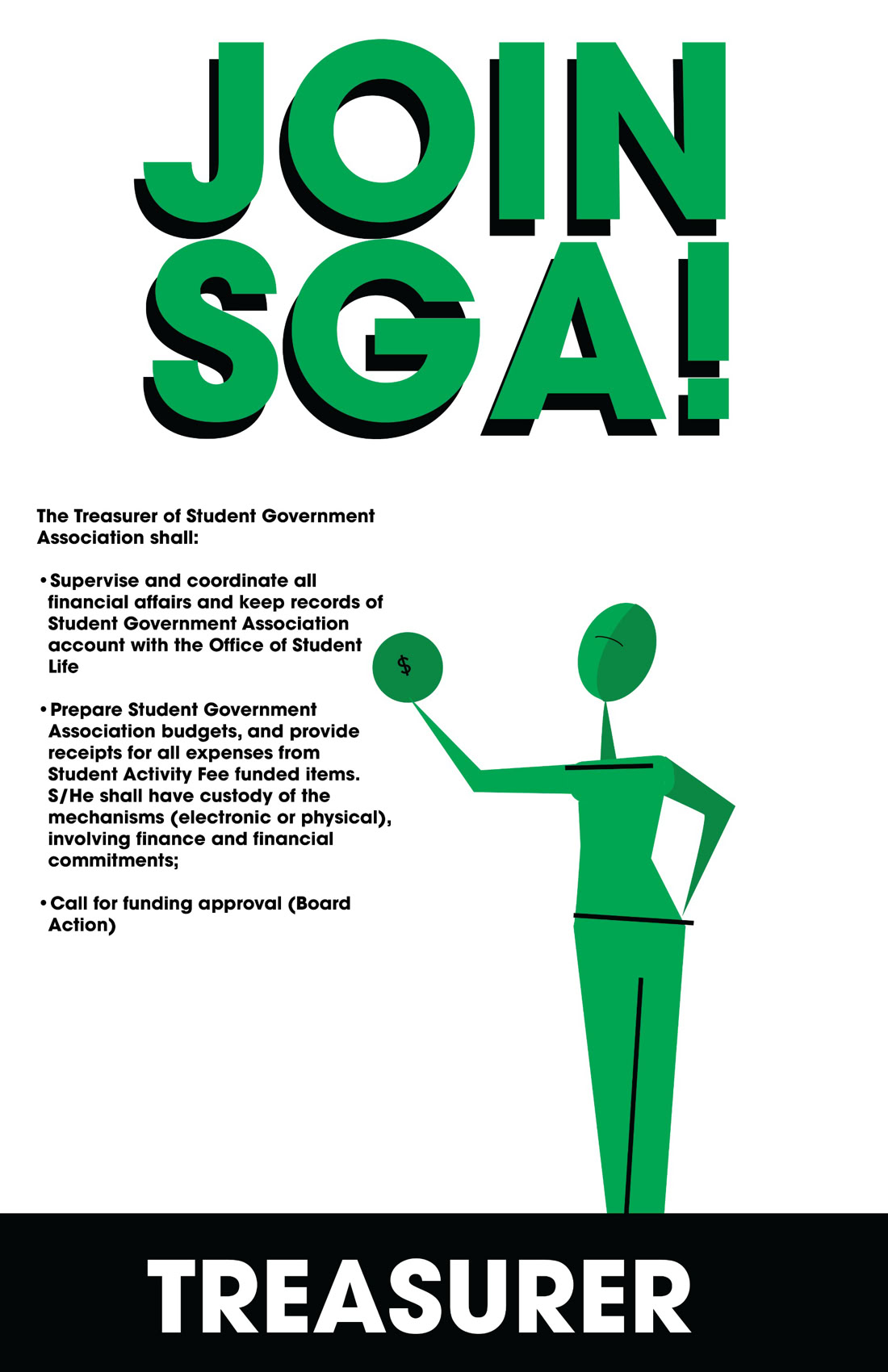 “JOIN SGA!” posters for Boston Architectural College’s Student Government Association.